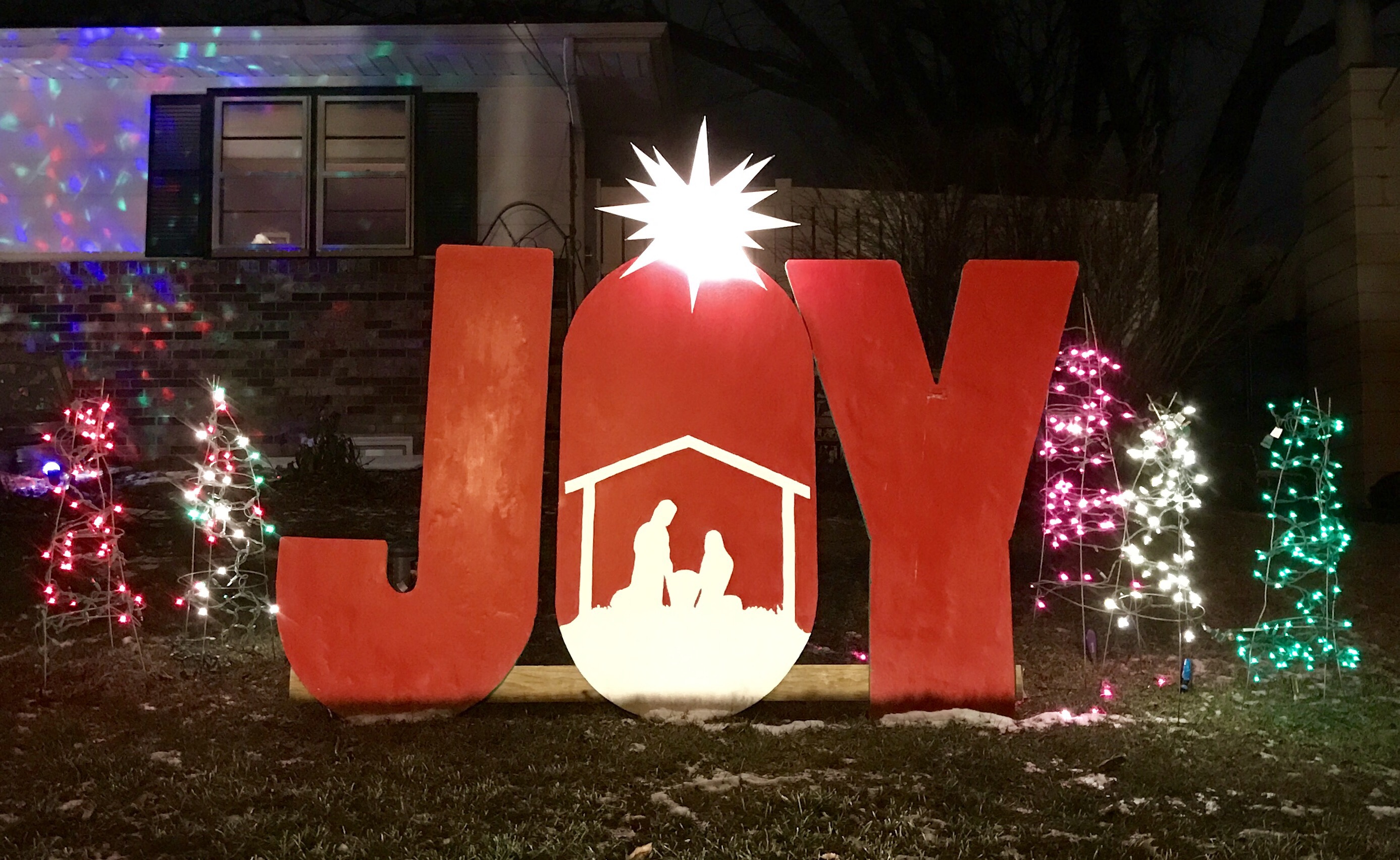 The word JOY is propped up and lit up in our front yard during this time of year because joy is one of those words people associate with Christmas time. This is also when people reflect on the past year, try to see the positives and resolve to make the next one better, but often fixate on the year’s struggles. Is there room for joy here?