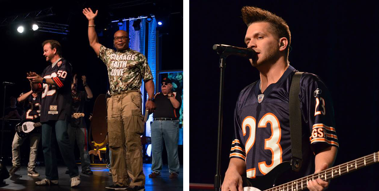 Just before the service…“I was made aware that this young marine’s family were in attendance seated in the front two rows. The morning’s service had an upbeat atmosphere because of Singletary and all the Bears/football stuff. When I learned these parents were out there, I felt an extreme burden for their sadness, in stark contrast to the excitement of the morning. I felt overwhelmed with such a responsibility, because of their grief. What could I say? I asked the Holy Spirit to speak through my mouth in a way that would minister to their sorrow. After the service these parents indicated that they were extremely moved by the words God had given me to say, and although I did not mention them specifically, they said they felt God was speaking directly to them.”