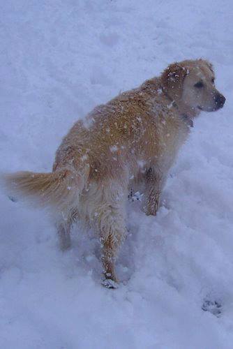 When I first saw the photo, I was convinced it was white and gold, because I assumed that what I was looking at was a dress in a dark part of a well-lit room. What I thought was white and gold looked as if it was cast in a light blue, which is often the case with subjects in the shade, as you can see in this picture of a golden retriever in the snow. The scene is in shade or under cloudy skies, and snow often looks blue in the shade. Wintery photos taken by a shooter who doesn’t compensate for the shade or adjust the photo for the proper “white balance” usually appear cool in color. It was conceivable that this dress was white and gold and catching a little indirect cool light from a dim source like a window.